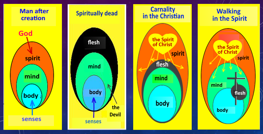 A human person is the trinity of spirit, mind and body. The position of the flesh in this whole can be described with diagrams: